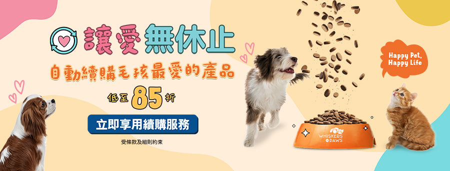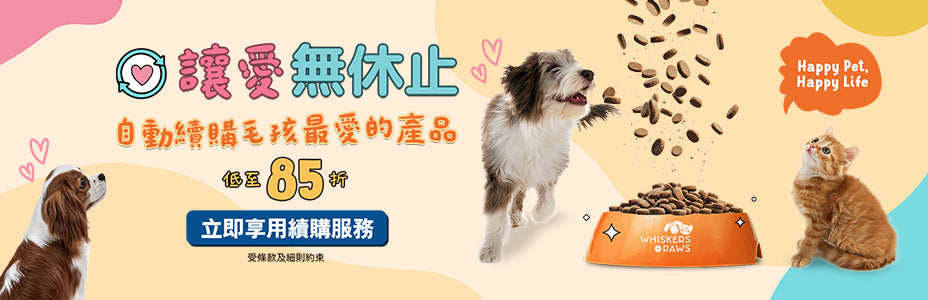 自動續購寵物用品專享高達85折優惠、免費禮品及更多!