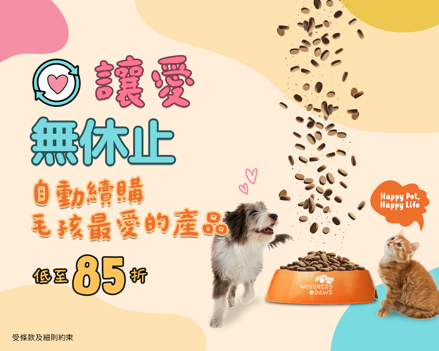 Whiskers N Paws 自動續購計劃是項便利顧客的服務,適用於希望輕易購買及補貨寵物用品的寵物愛好者。