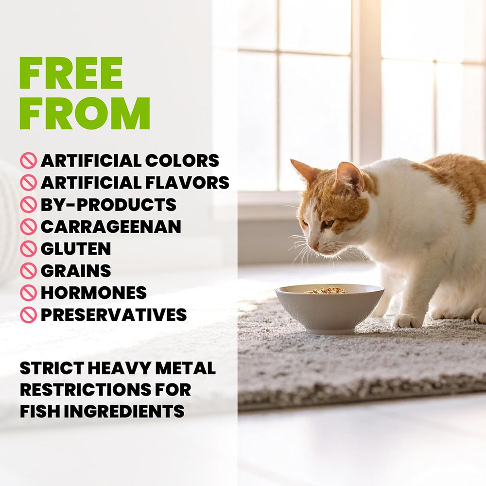 南瓜為天然纖維來源,有助調節腸道蠕動及促進腸道健康。配方不含穀物、麩質、副產品、荷爾蒙、卡拉膠、人造香料或防腐劑,適合對食物敏感的貓咪日常食用。