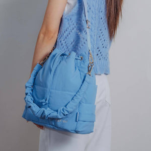 Crafted from high-quality recycled waterproof nylon or 100% cotton denim (depending on style), this bag is both eco-conscious and durable. It is water-resistant, easy to clean, and comfortable to carry, ensuring it stands up to daily use. For added flexibility, the bag comes with adjustable and detachable shoulder straps plus a limited-edition bubble handle strap, allowing you to wear it handheld, crossbody, or over the shoulder.
