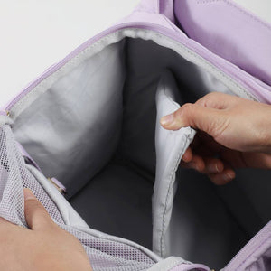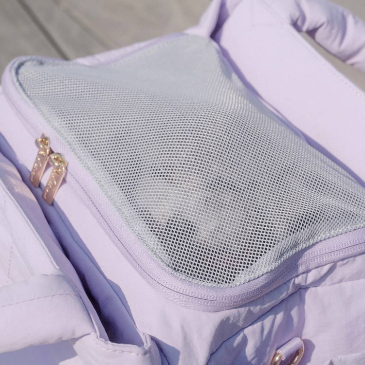 Fanny Bubble Bag 的一大特色是雙拉鏈網布封口,可按需要調整開合程度,亦可完全封閉。對於一些即使標明寵物友善、但仍要求寵物必須全程置於密封袋內的場所,這個設計尤其實用。同時,半開放式設計亦讓毛孩可以在合適情況下探頭看看四周,享受更有互動感的旅程。