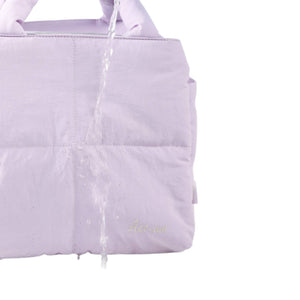 - 外層材質:順滑防水面料,配合絎縫細節與蓬鬆手挽