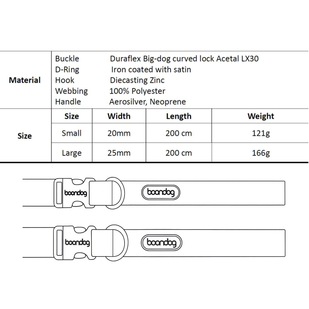 為提升安全性,Play Leash 2.0 設有短握把,方便你喺突發情況下即時將狗狗控制喺身邊。配合 BoonDog 一貫可靠嘅 P-Hook 掛扣,呢款狗繩將耐用、安全同舒適集於一身,設計簡潔而實用。