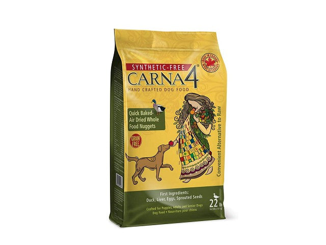 Carna4 natural ingredients, particularly their fresh duck, liver, eggs and certified organic sprouted seeds, provide your dog a clean, complete diet that is every-day-easy. Their sprouted seed mix offers a wealth of super-nutrients, including high levels of naturally occurring antioxidants and Omega-3 fatty acids.