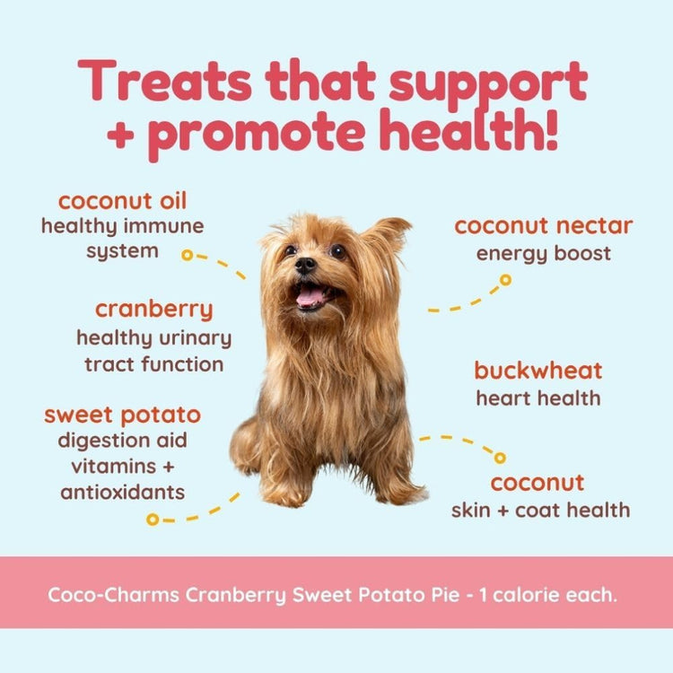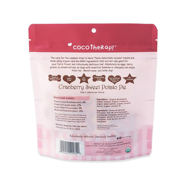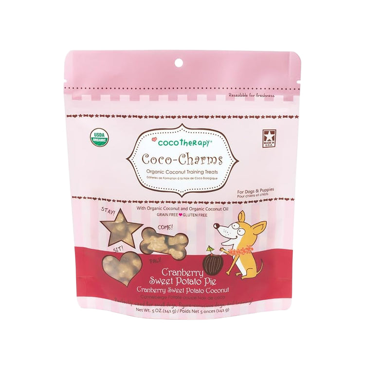 Reward your pup the healthy way with CocoTherapy Coco-Charms Organic Training Treats in Cranberry Sweet Potato flavor. USDA Certified Organic and made with 100% human-grade, non-GMO ingredients, these tiny treats are the perfect size for training, small dogs, or calorie-conscious pups.