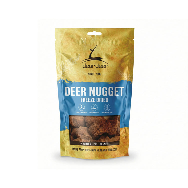 dear deer contains absolutely no synthetic ingredients, fillers, coloring, flavoring or preservatives. It is made with 100% deer.