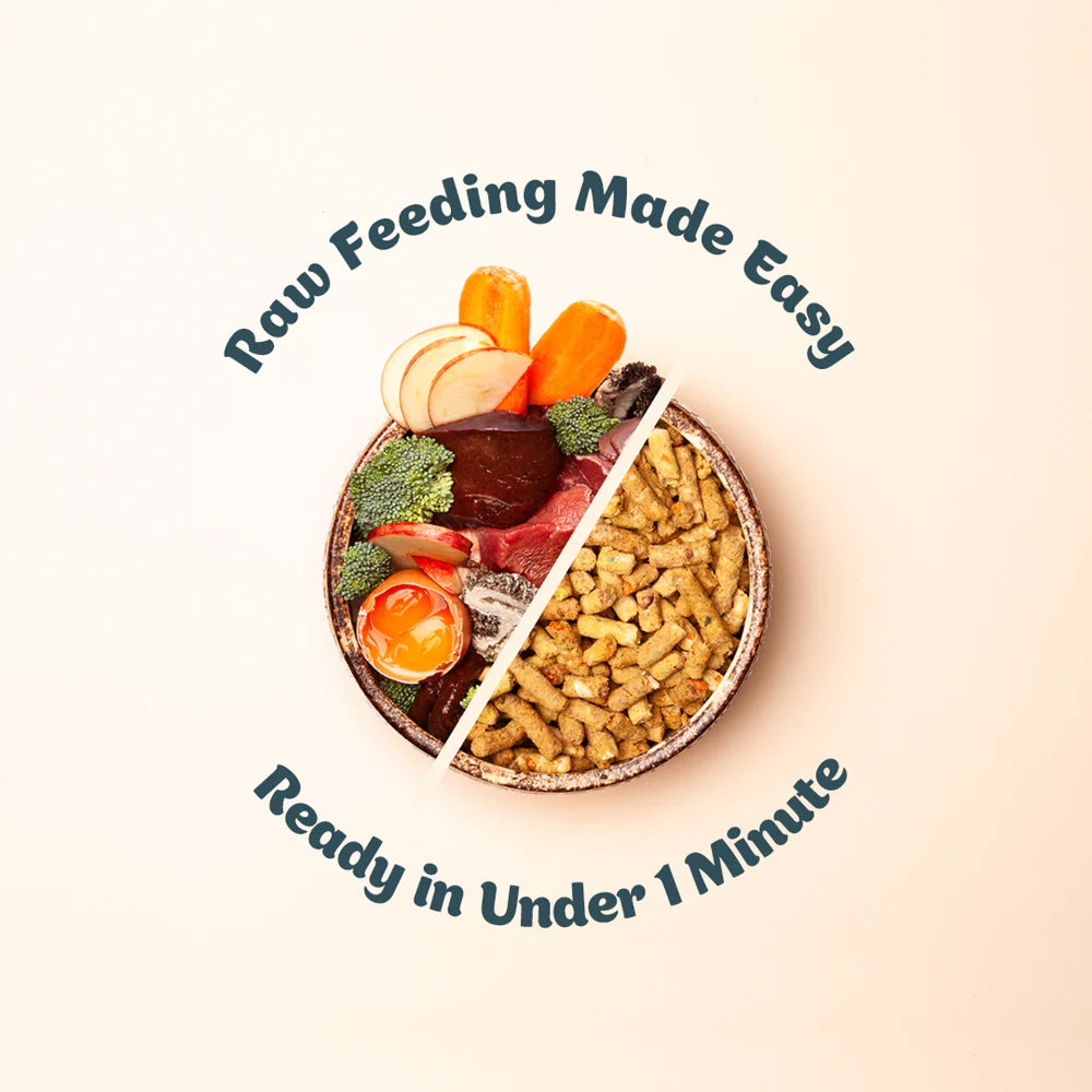 不含人工添加劑、基因改造成分及麩質,支持可持續農業與動物福利。由專業獸醫設計,符合 AAFCO 與 NRC 標準,為毛孩提供安全方便的天然生食選擇。