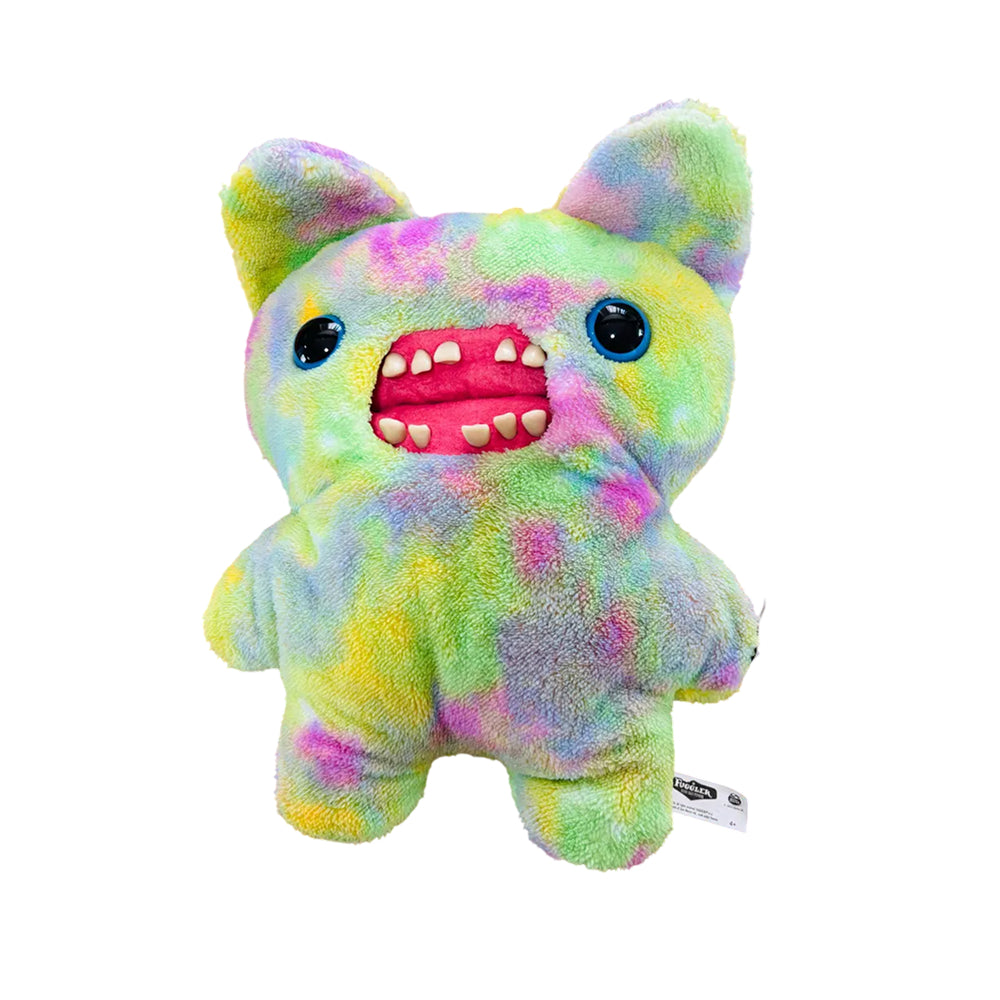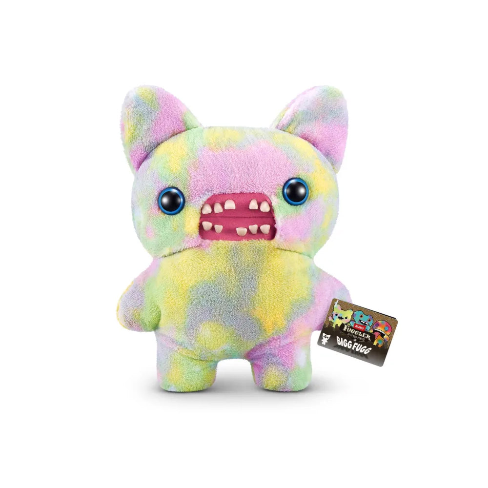 Wrapped in multi-coloured tie-dye fuzzy fur, this XL Fuggler demands attention before it even makes a sound. Its character is built around sheer auditory mayhem, imagined as a window-shattering squeal that echoes through the streets wherever it goes. The exaggerated personality details, including trombone-level fart velocity and bubbly phlegm consistency, push the absurd humor Fugglers are known for even further.