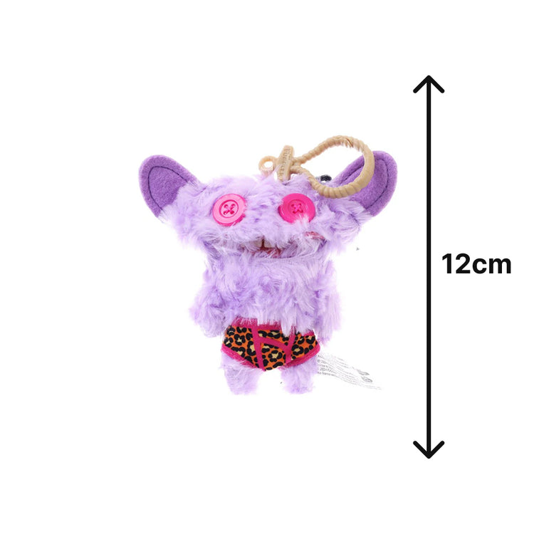 Wrapped in lilac swirl plush fur and proudly wearing pink and leopard print underpants, this miniature Fuggler loves to show off before unleashing total chaos. Flashing a gummy smile one moment and setting off a full fart tornado the next, Grin Grin thrives on confusion and discomfort. It is often imagined lurking behind bathroom doors, poking unsuspecting victims and waiting for the perfect moment to strike.