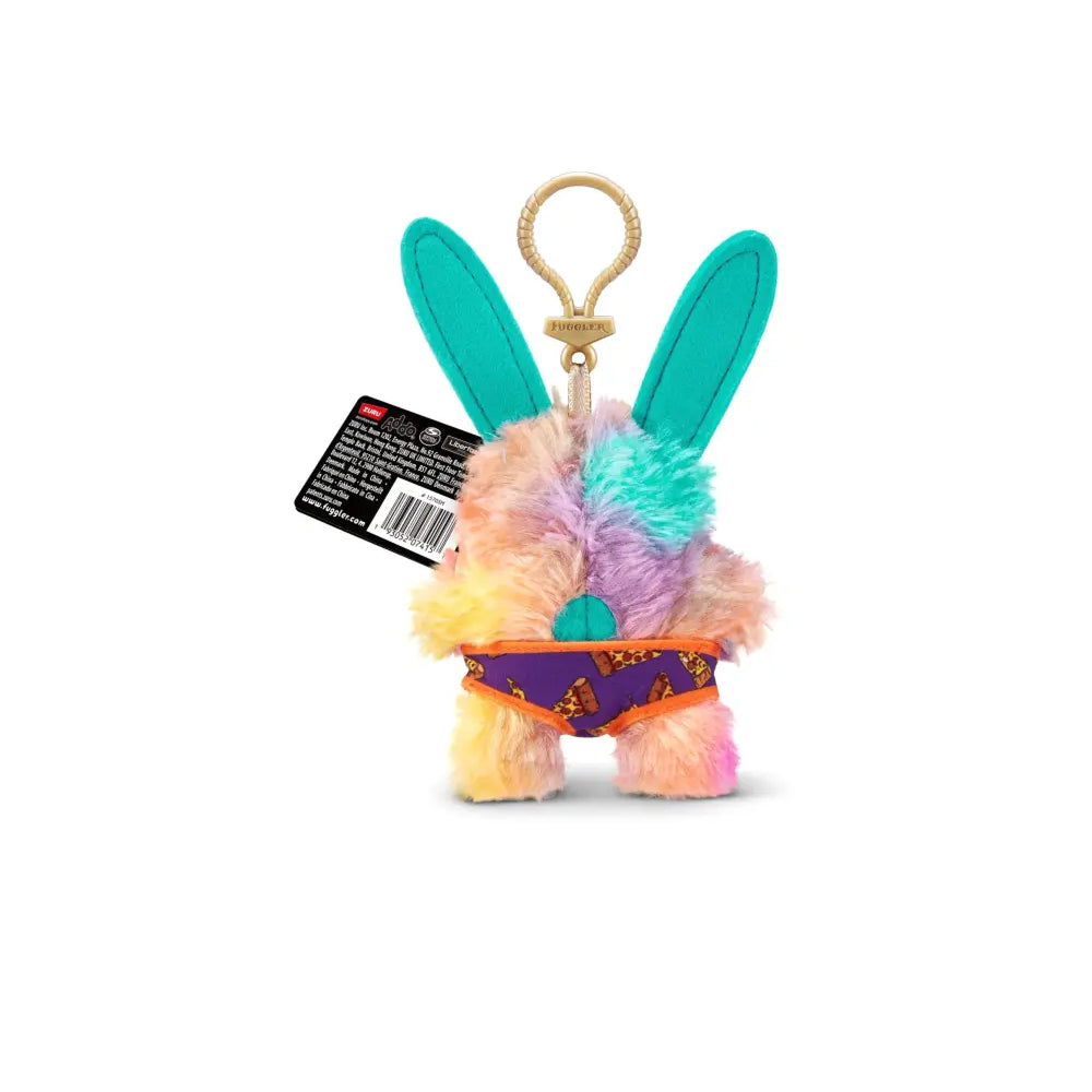 多色旋渦毛絨外層令這隻小兔怪更加搶眼,角色設定永遠在尋找芝士與香腸薄餅,無論走到哪裡都像隨時準備搶走你的外賣。鎖匙扣設計可扣在鎖匙或袋上,方便隨身攜帶,亦確保混亂一路跟隨。