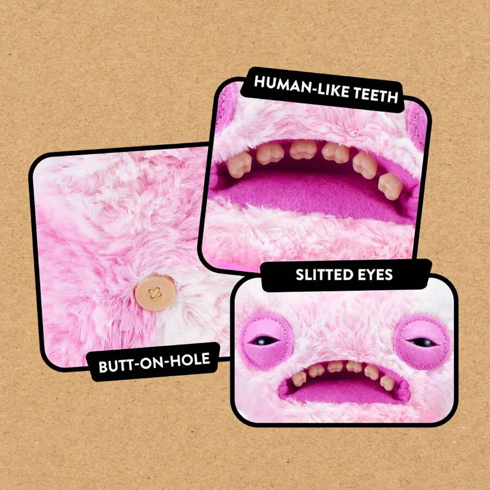 Featuring the signature disturbingly human-like teeth, this Love Fugg showcases the unforgettable Fuggler grin that is equal parts creepy and funny. As part of the Love Range, it makes a hilariously weird Valentine’s Day gift, a prank surprise, or a standout collectible plush.
