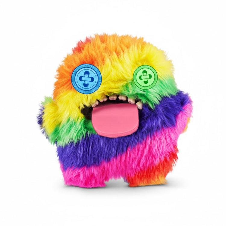 With wildly mismatched button eyes, a tongue permanently sticking out, and disturbingly human-like teeth, Oogah Boogah is impossible to ignore. Its rainbow long-haired fur adds to the madness, giving it an over-the-top look that feels equal parts ridiculous and menacing.