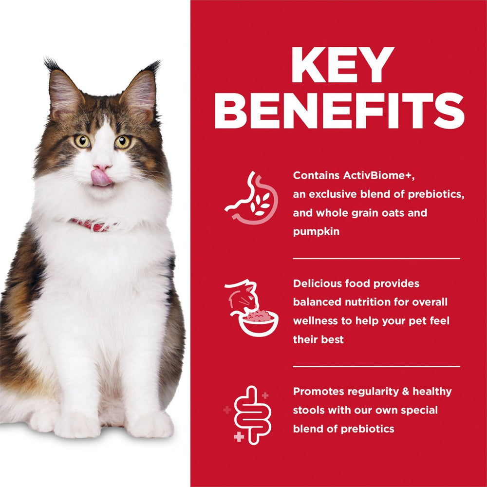 This advanced recipe features ActivBiome+ Technology, an exclusive blend of prebiotics including whole grain oats and pumpkin that actively nourish beneficial gut bacteria. The result is improved nutrient absorption, consistent digestion, and healthier stool quality, helping your cat feel comfortable every day.