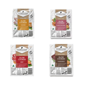 Can’t decide which flavour your dog will love most? The Ivory Coat Frozen Grain Free Slow Cooked Sampler lets your furry friend enjoy the full variety of our nutritious slow-cooked meals — all made with premium Australian ingredients.