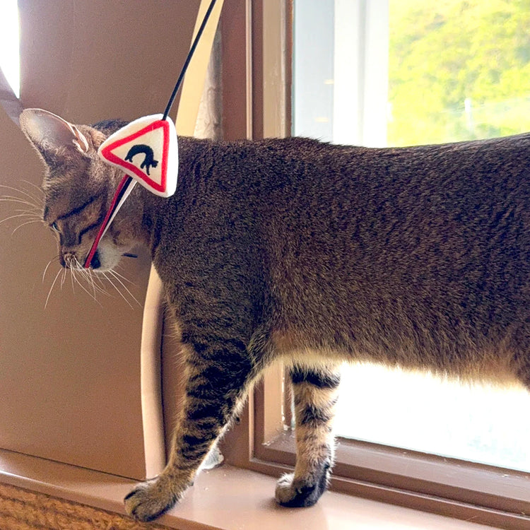Meow² Cat Warning Sign 柔軟逗貓棒以可愛又搞笑的「貓咪警告標誌」造型設計,搭配 47cm 長棒,為您的貓咪帶來充滿活力的互動遊戲體驗。