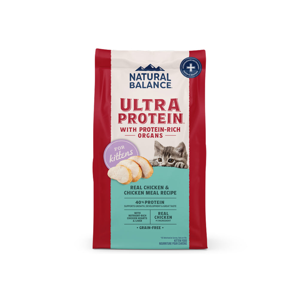 Natural Balance Ultra Protein Kitten Recipe is formulated to meet the nutritional levels established by the AAFCO Cat Food Nutrient Profiles for All Life Stages.