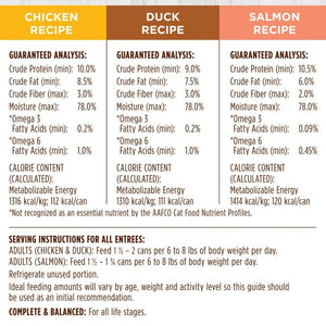 高蛋白無穀濕糧,三種口味選擇:雞肉、鴨肉、三文魚。