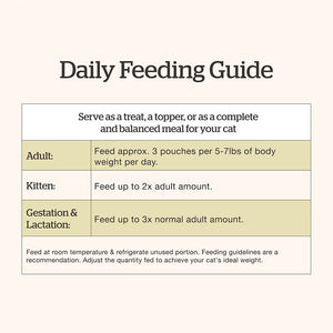 Free from chicken, grains, gluten, fillers, and artificial ingredients, this clean and nutritious pate is ideal for cats with food sensitivities or dietary restrictions. Serve it as a complete meal or alongside dry food to add variety, moisture, and irresistible flavor to your cat’s diet.