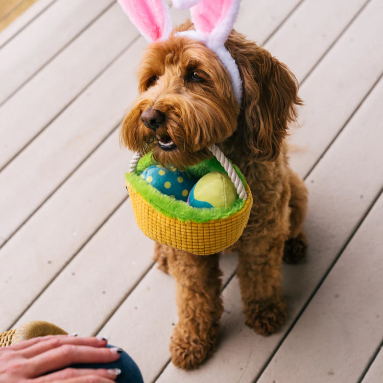 - 復活節主題籃子玩具: 充滿節日氣氛的可愛設計,為狗狗日常玩樂增添更多驚喜與趣味。