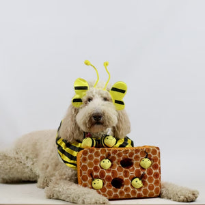 Patchwork Pet Bees in a Honeycomb is an interactive enrichment toy designed to keep your dog curious, engaged, and mentally stimulated. Built on a supportive memory foam base, this play set includes small squeaky plush bees that can be placed into the honeycomb for layered, discovery-style fun.