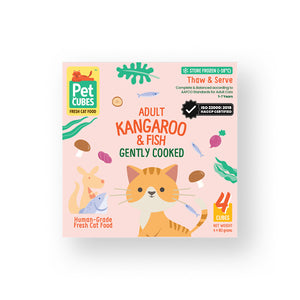 PetCubes - Frozen Fresh Human-Grade Gently Cooked Kangaroo & Fish Adult Cat Food