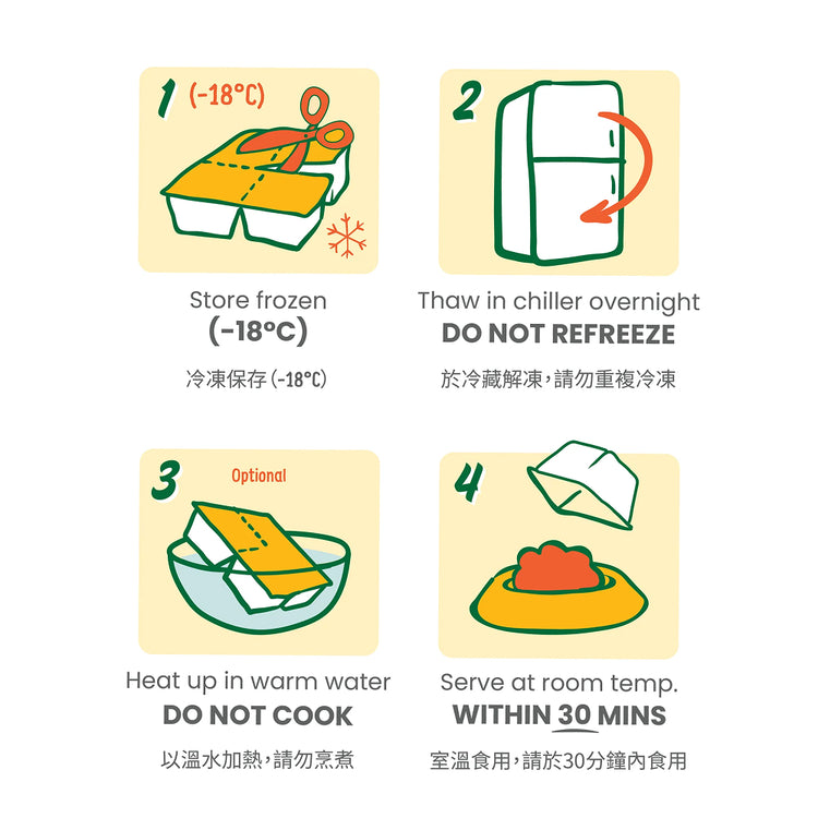 配方採用溫和熟煮方式製作,在確保安全與消化性的同時保留天然營養。結合多種蔬菜、超級食物及功能性成分,如益生菌、益生元、富含 Omega 的金目鱸魚油及草本營養,有助促進消化、皮膚、毛髮及免疫健康。