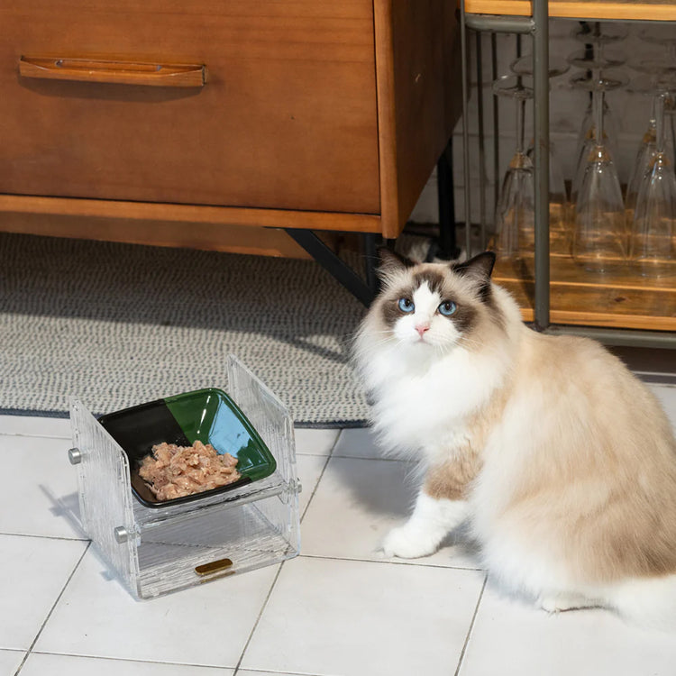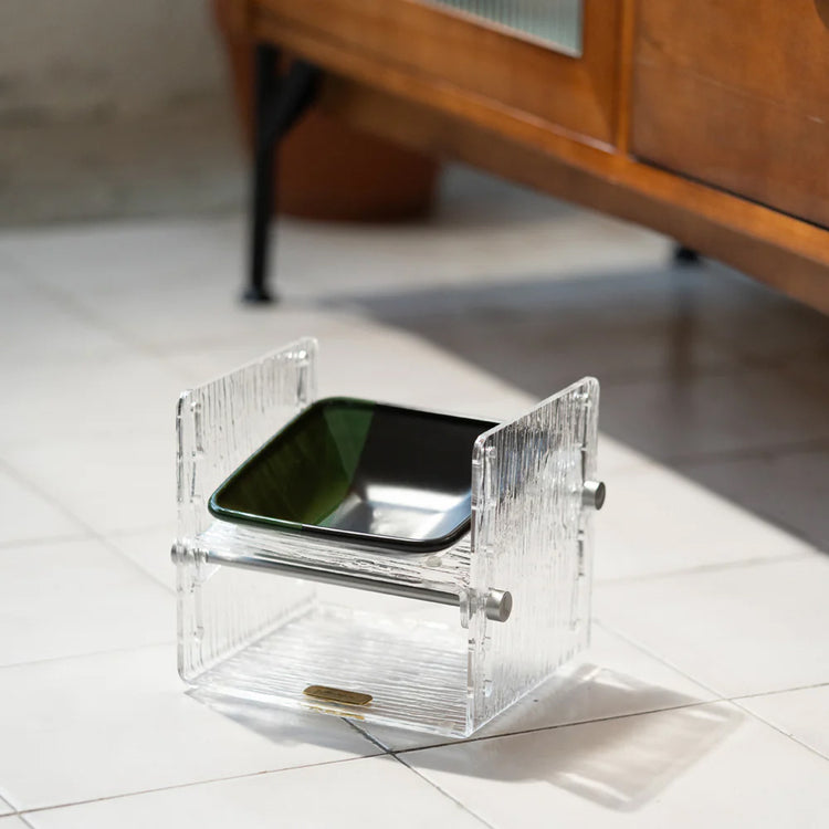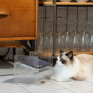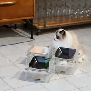 可以因應主子的需要而調較碗架高度和斜度的底座,底部及碗架都有防滑保護增加安全性。透明設計增加通透感,給予你們的家更大的空間感,自然紋理設計亦使你的家更美觀,碗架更耐用。