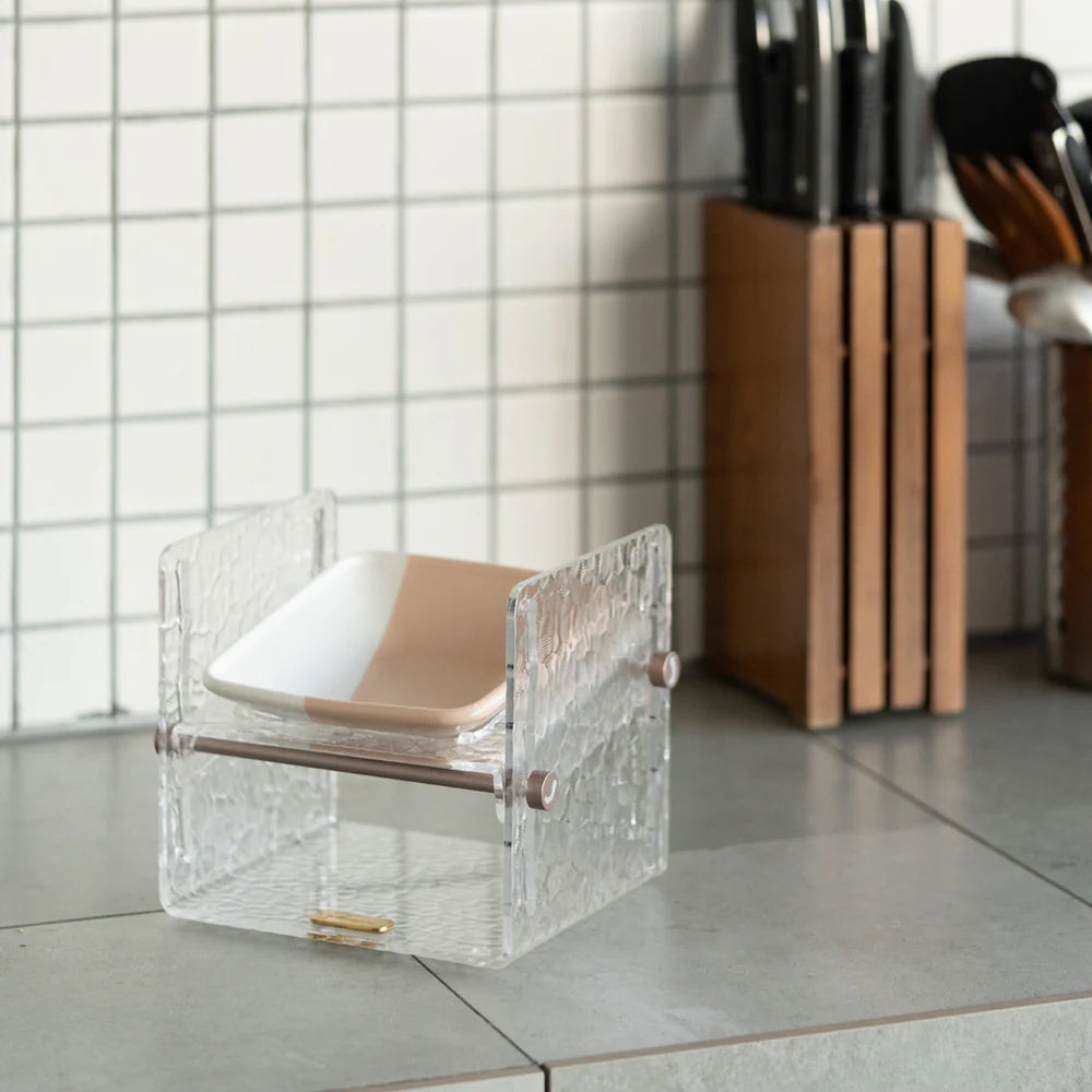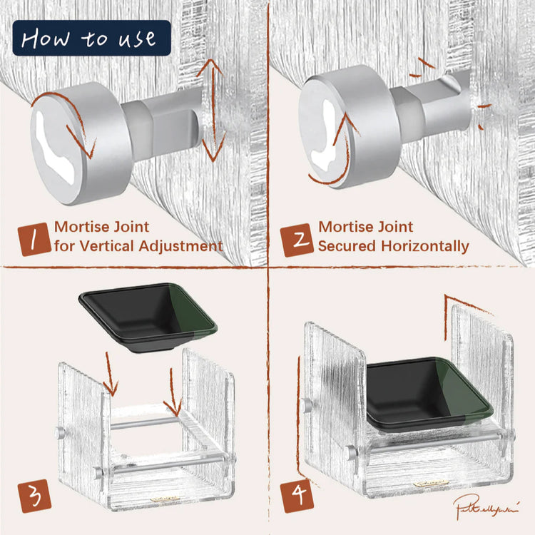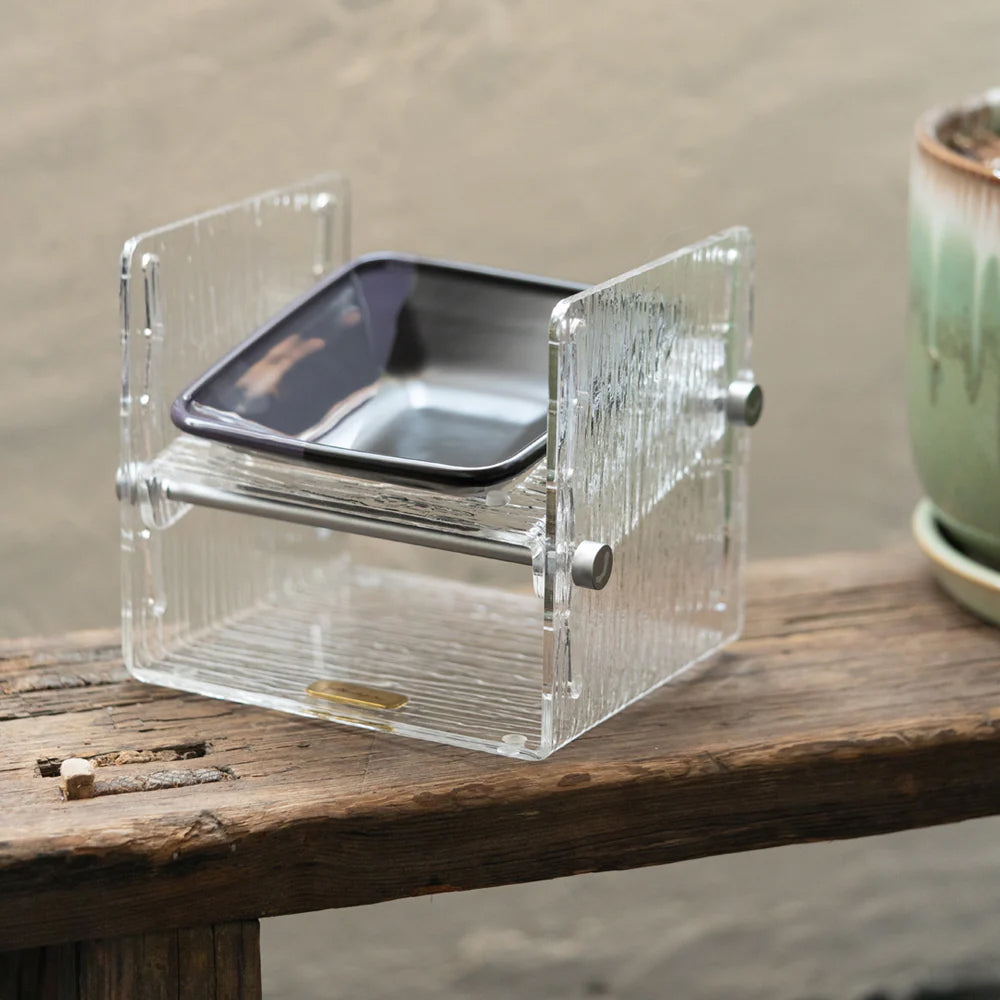 The stand allows for height and angle adjustments according to your cat’s needs, with anti-slip protection for added safety. The transparent design enhances the sense of space in your home, while the natural texture adds aesthetic appeal and durability to the bowl stand.