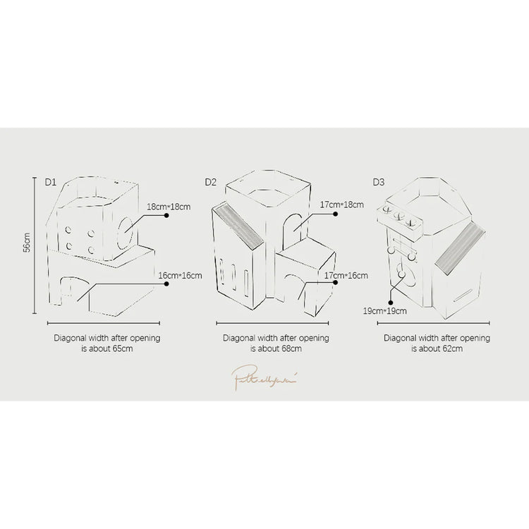 整間貓屋不超過 3kg,加上沒有底板,單手便能輕鬆提及清潔。折疊式設計使組裝更簡單,一打開便成為貓咪小天地。