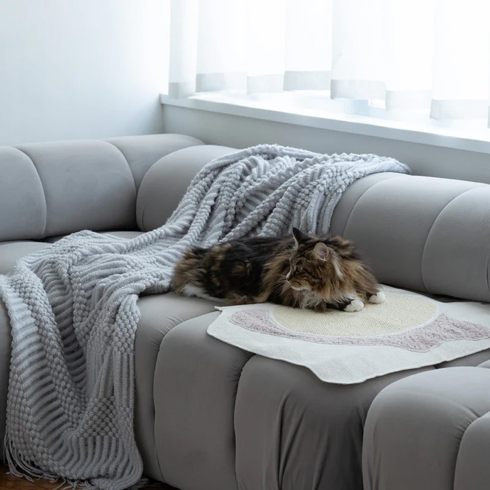 The Sofe sisal cat scratching mat is designed specifically for this purpose. It can be laid flat, bent, or hung in the areas of your home where your cat frequently stays or scratches, providing a dedicated space for clawing while protecting your furniture and your peace of mind.