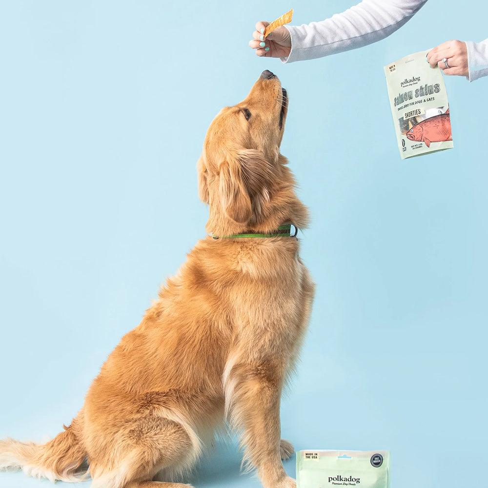 Polkadog’s commitment to sustainability shines through in every bite. As a proud 1% for the Planet partner, a portion of each sale supports environmental causes. Whether you’re training, treating, or simply sharing a moment, Salmon Skin Shorties deliver high-value nutrition in a light, crunchy texture that dogs and cats go crazy for.
