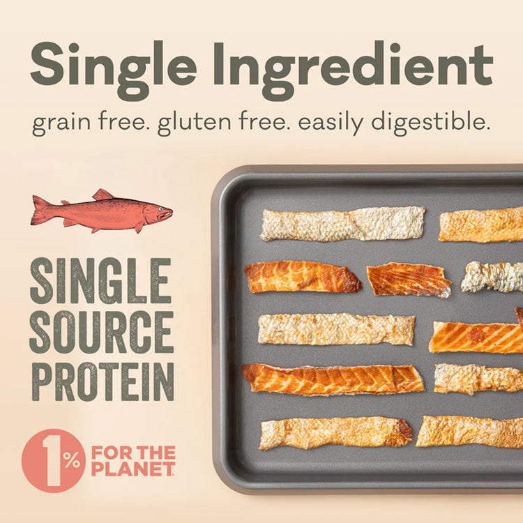 用 Polkadog 三文魚皮煙燻短條 獎勵你嘅毛孩——只用一種天然食材製成:100% 可持續來源三文魚皮。喺美國波士頓魚市場以小批手工製作,每條小食經過輕柔煙燻,再慢慢風乾,保留最原始嘅味道同營養。