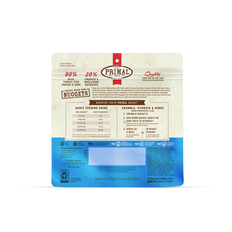 凍乾鴨肉火雞魚塊狗糧以無激素、無抗生素的放養鴨與火雞,以及野生太平洋鱈魚製成,並搭配有機蔬果與種籽,提供完整均衡的天然營養。凍乾低溫加工,保留酵素、胺基酸及重要營養素。