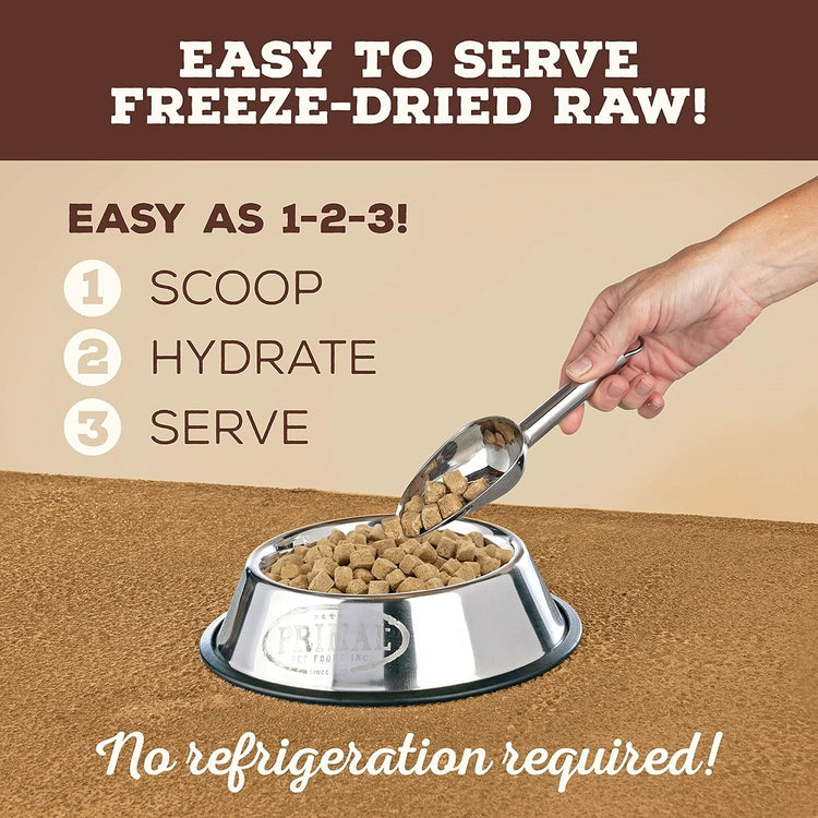 Easy to serve: just scoop, hydrate with warm water, bone broth, or goat milk, and serve. Ideal for busy pet parents who want the benefits of raw feeding without the mess. Shelf-stable for convenience, yet bursting with the whole-food nutrition your dog craves.