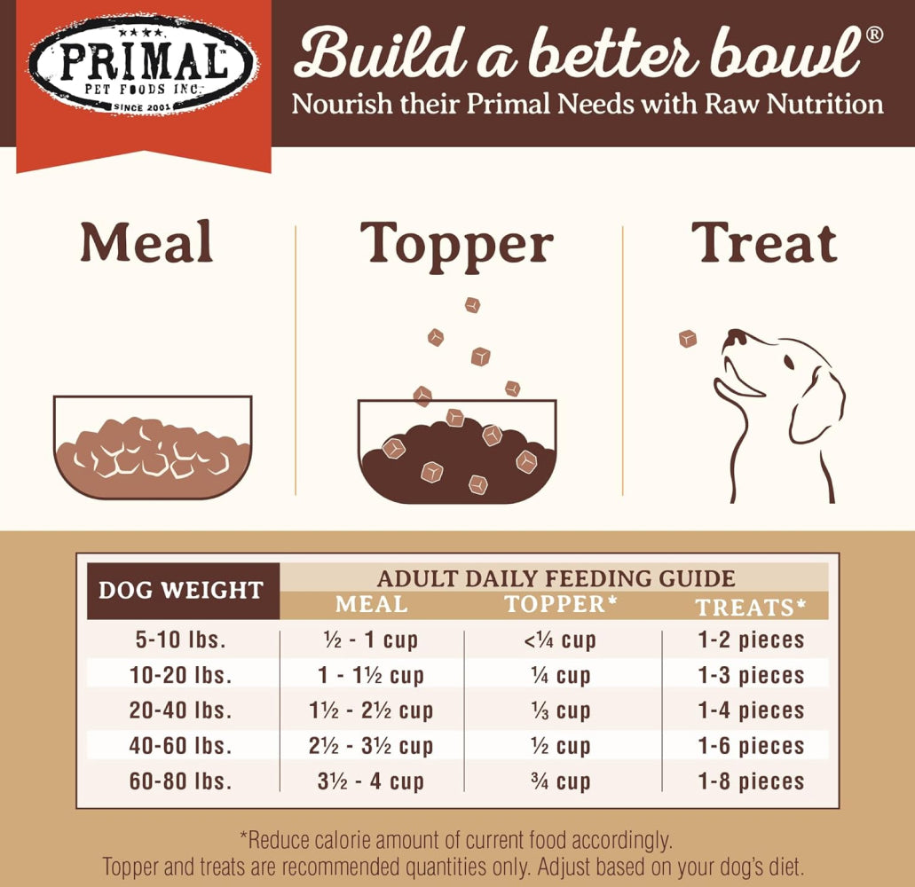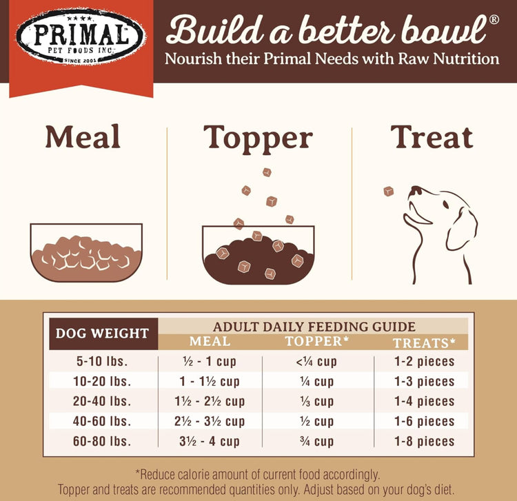Primal Pet Foods 認為提供寵物另一種營養來源至關重要,因為我們心愛的動物中有相當多被診斷出與飲食相關的疾病。所有 Primal 產品僅使用最高品質的生食原料,提供寵物高度消化的氨基酸、維生素和礦物質,這些都是動物生理功能的基礎建設。