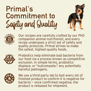Primal Pet Foods 認為提供寵物另一種營養來源至關重要,因為我們心愛的動物中有相當多被診斷出與飲食相關的疾病。所有 Primal 產品僅使用最高品質的生食原料,提供寵物高度消化的氨基酸、維生素和礦物質,這些都是動物生理功能的基礎建設。
