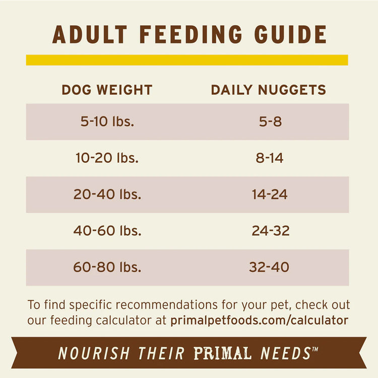 Perfect for pet parents seeking a raw feeding solution without the mess or hassle, Primal's Rabbit Nuggets are available in resealable 5.5 oz and 14 oz bags. Whether you're topping kibble or feeding it as a complete meal, your pup gets the real food they crave and the nutrition they deserve—without fillers or artificial additives.