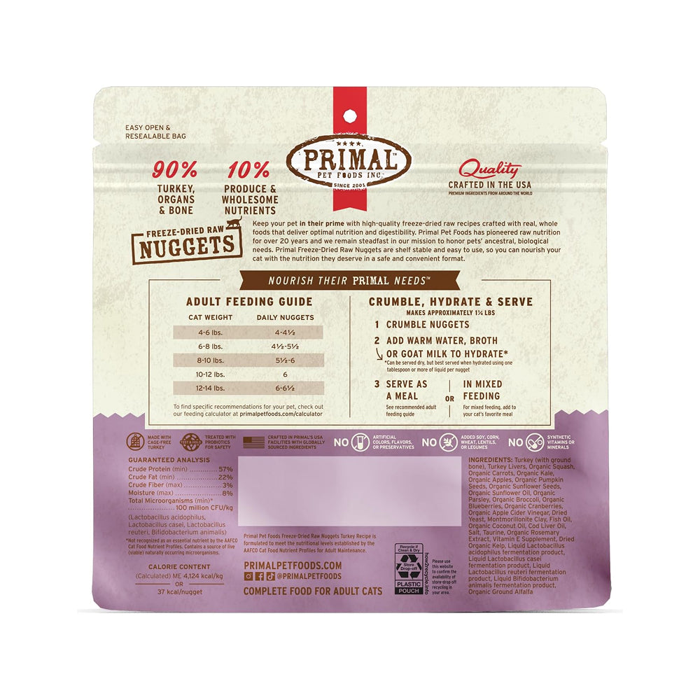 Primal Pet Foods 認為提供寵物另一種營養來源至關重要,因為我們心愛的動物中有相當多被診斷出與飲食相關的疾病。所有 Primal 產品僅使用最高品質的生食原料,提供寵物高度消化的氨基酸、維生素和礦物質,這些都是動物生理功能的基礎建設。