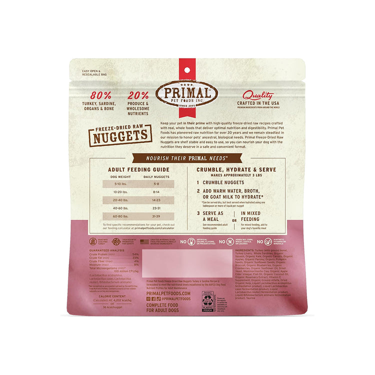 Primal Pet Foods Inc - Freeze Dried Turkey & Sardine Nuggets Dog Food