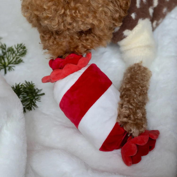 甜甜軟軟、超級好嗅!Peppermint Candy 嗅聞狗狗毛絨玩具以聖誕糖果卷為靈感,讓狗狗在節日期間「拆糖果」般享受嗅聞樂趣。玩具採用長筒造型,結合躲藏零食的空間與沙沙響的兩端,帶來多重感官刺激,讓狗狗整季都玩得不亦樂乎。