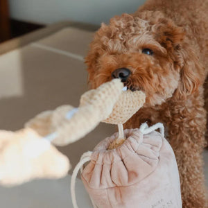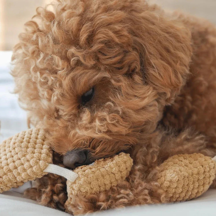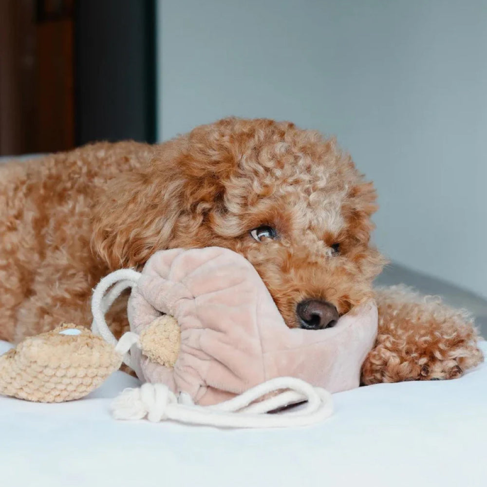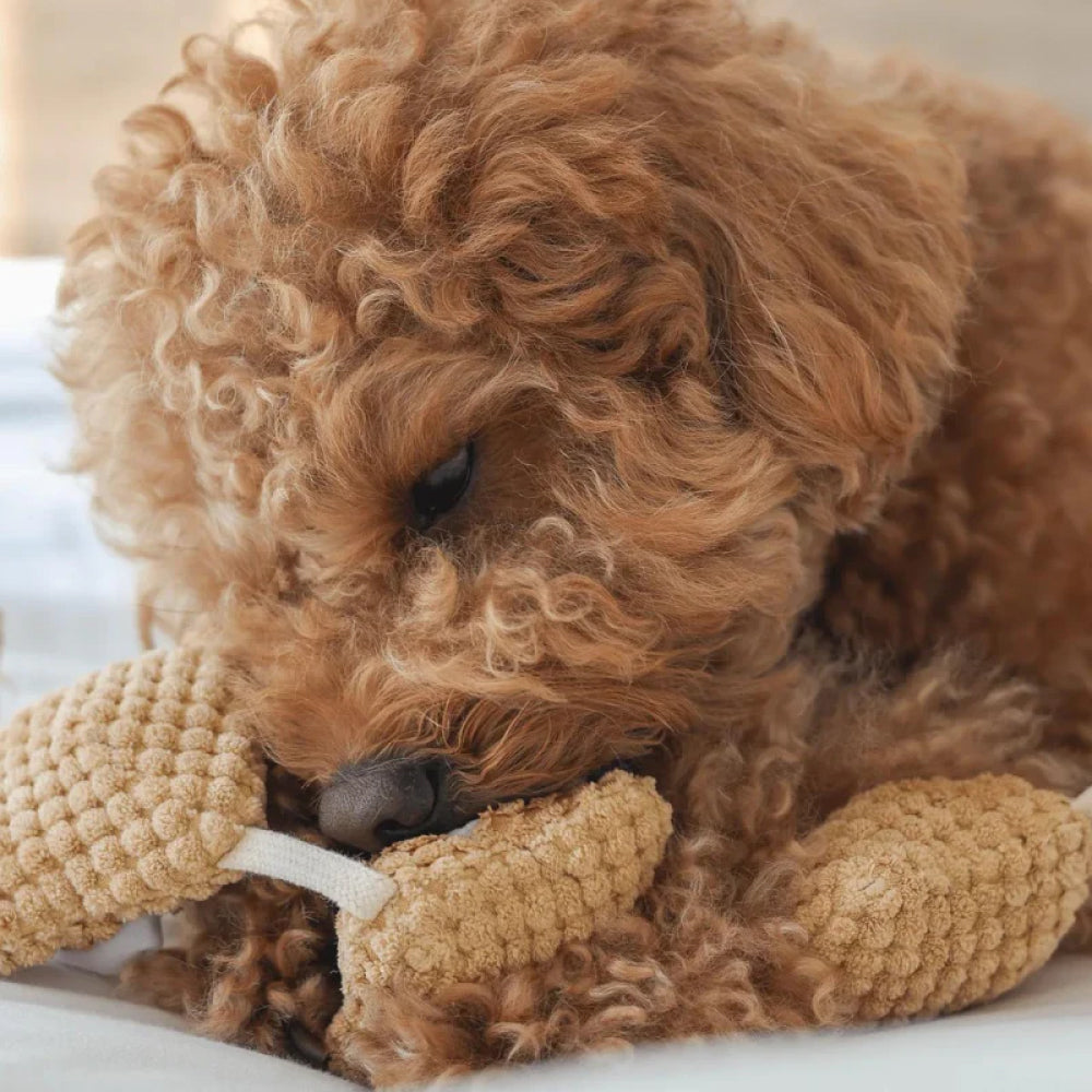 Reinforced with a durable nylon lining and made from non-toxic materials, this plush toy is safe and long-lasting for small to medium-sized dogs (up to 15 kg / 33 lbs). Plus, its soft neutral colors make it a charming addition to any modern home.