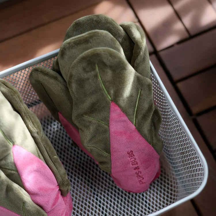 Harvested straight from the nosework garden, the Snuffle Swiss Chard Plush Toy is a fun and enriching toy designed for curious pups who love to sniff, search, and forage. Inspired by leafy greens, this adorable plush toy features soft layered “leaves” that fold and curl, creating multiple spaces to hide treats for rewarding sniff sessions and interactive play.