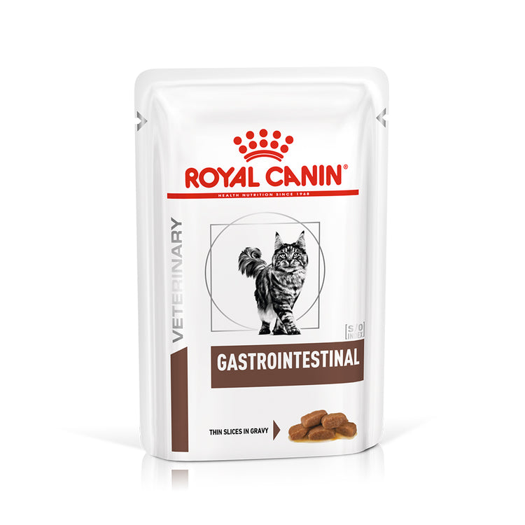 The Royal Canin Veterinary Health Nutrition (VHN) Gastrointestinal Cat Pouch is a specialized veterinary wet food designed to support cats with digestive sensitivities. Formulated with highly digestible proteins, balanced fibers, and key nutrients, it promotes optimal digestive health and nutrient absorption.