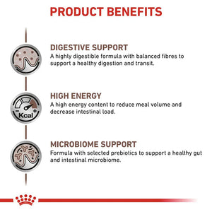 Enriched with EPA and DHA, long-chain omega-3 fatty acids, this diet helps support digestive system health and manage intestinal inflammation. Its high energy density allows dogs to meet increased energy needs with smaller meal portions, supporting weight regain during recovery.