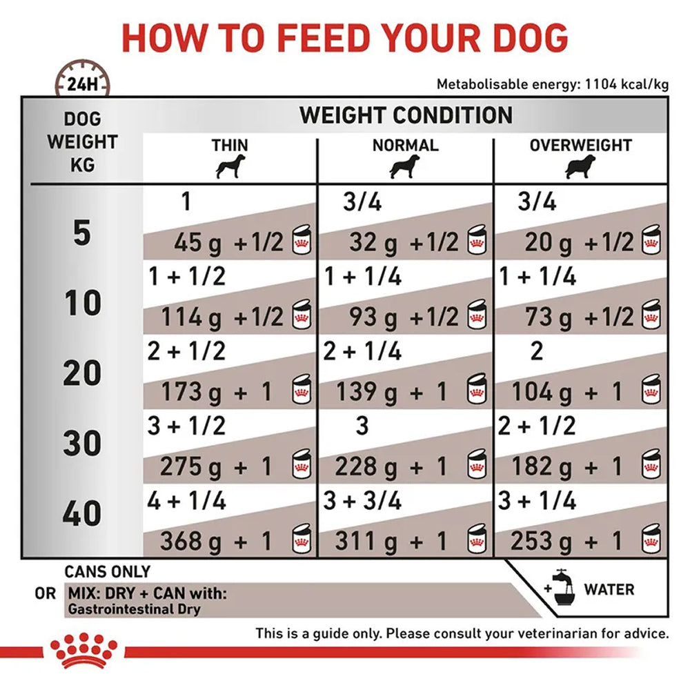 Royal Canin VHN Gastrointestinal Dog Can should be fed under veterinary supervision to ensure appropriate digestive support and nutritional management.