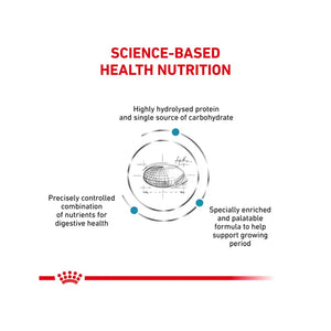 ROYAL CANIN® Veterinary Health Nutrition Hypoallergenic Puppy is a complete dietetic feed specially formulated for puppies with ingredient or nutrient intolerances. Recommended for puppies over 6 months of age with an expected adult weight above 4kg, it delivers tailored nutrition for sensitive pups.