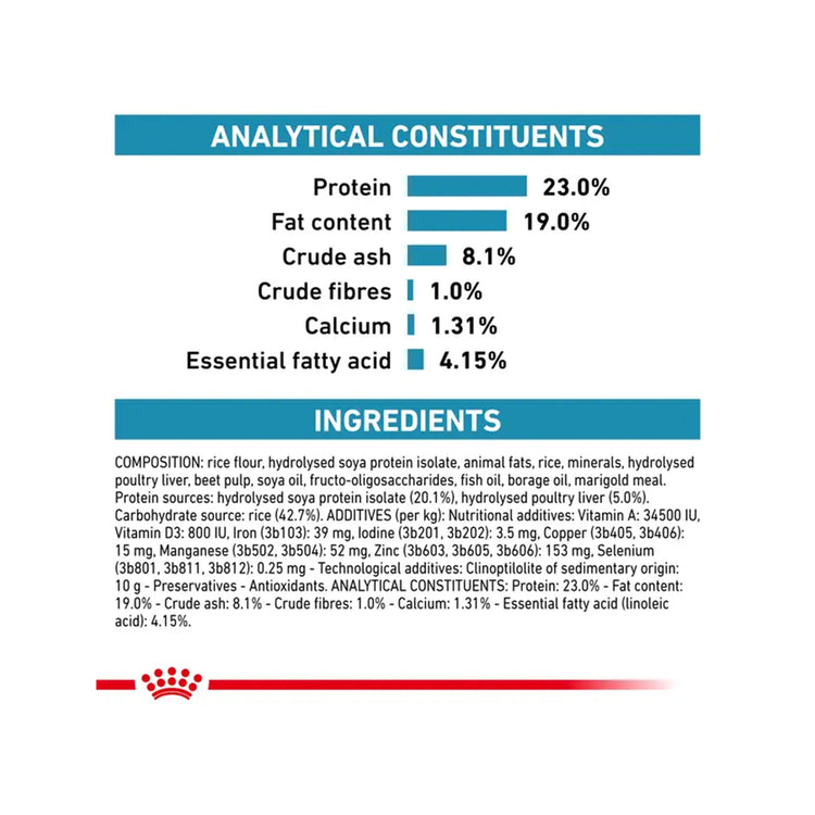 - Digestive Support: Hydrolysed protein and rice for improved tolerance.