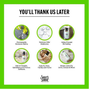 聞到臭味,發現污漬?現在你可即時去除臭味污漬!Skout's Honor的專業去漬除臭噴霧採用BioKore™生物分解技術,即時溶解污漬以及破壞臭味物質分子,令家居回復清潔乾淨!所有Skout's Honor的產品均安全無毒,而且可生物降解和不含刺激性物質、氯或甲醛,對環境無害之餘,又能有效去除頑固污漬。
