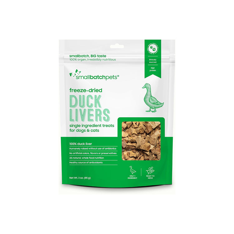 Bring home Smallbatch Freeze Dried Duck Liver Treats and give your pets a protein-rich, nutrient-dense snack they will love, whether during training, mealtime, or as a daily show of affection.