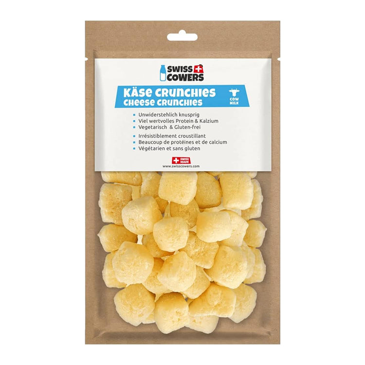 Made with 100% natural ingredients, free from preservatives, gluten, and artificial additives, Swiss Cowers Cheese Crunchies are a wholesome way to reward your dog. Each bite is bursting with authentic Swiss quality, delivering both nutrition and flavor in every crunch.